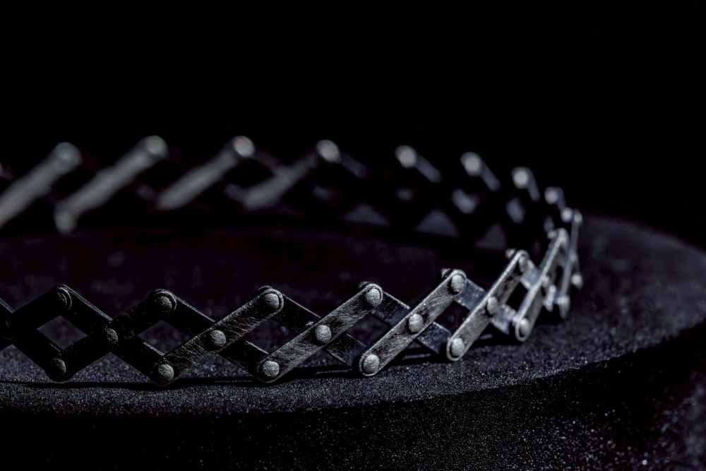 変形可能なジュエリーにはさまざまなデザインの種類があります。代表的なものには、ペンダントの中に収められたスウィングパーツや、ブレスレットに組み込まれたチェーンリンクデザインがあります。これらは動くたびに異なる表情を見せるのが特徴です。さらに、折りたたまれたり展開されたりすることで形状が変わる仕組みを持つものもあり、その構造は職人の技術力と創造性を示しています。これにより、シンプルな動作がジュエリー全体にダイナミックな変化をもたらすのです。