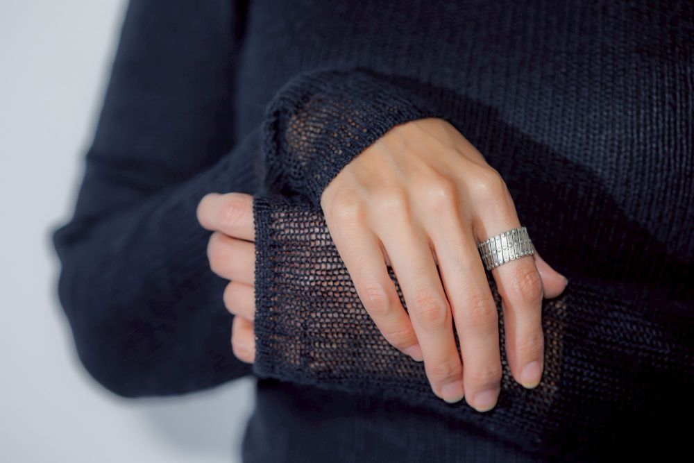 【Moriyama Ringyou】-モリヤマリンギョウーより発信する、「無」を始点とし、何にも囚われない、自由な発想と独創的なメカニズムが生んだ、進化系ジュエリー『ZERO』。シルバー925プレートを組み合わせ制作した、可動式のリング・ブレスレットです。接続箇所に、ワッシャーを入れることで、拡張・縮小の動きを滑らかにしています。燻の効いた重厚な雰囲気で魅了する、ユニセックスジュエリーとして、年齢、性別を問わずお使いただけます。存在感のあるリングとして、またブレスレットとして装いのアクセントに、経年変化をお楽しみ頂けるシルバージュエリーは、永く愛着を持ってお使い頂けます。ご興味のある方はぜひこちらからご覧ください↓↓↓