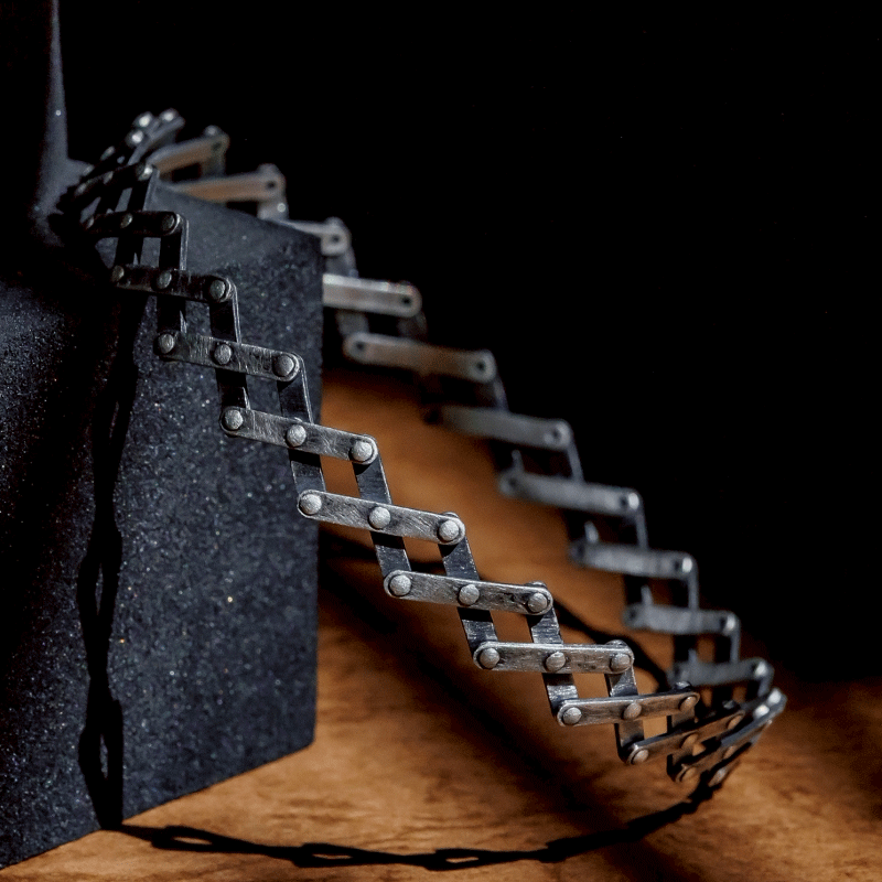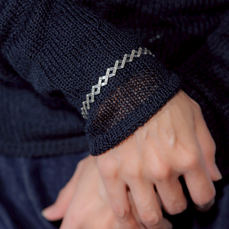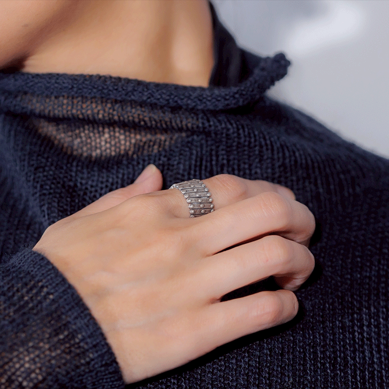 シルバー925、25mmのシルバープレートを組み合わせ制作した、可動式のリング・ブレスレットです。接続箇所に、ワッシャー(シルバー925)を入れることで、拡張・縮小の動きを滑らかにしています。