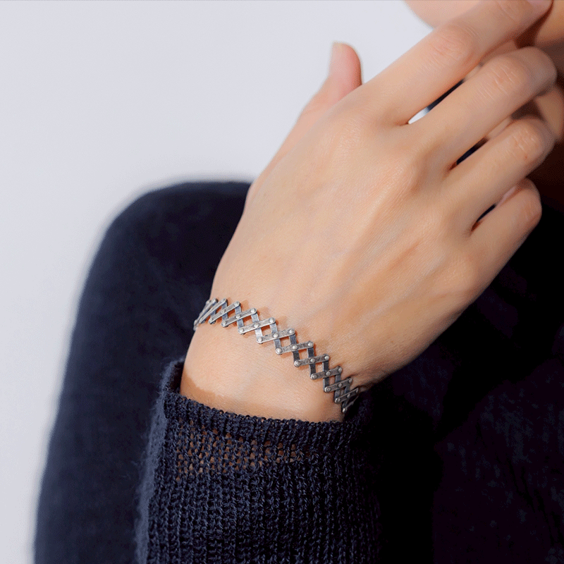 ・ブレスレットとして腕に添わせる際、外す際も、もう片方の手のひら全体で力を分散させ縮めたり、装着側の腕を上手く使い、徐々に広げて取り外しを行ってください。