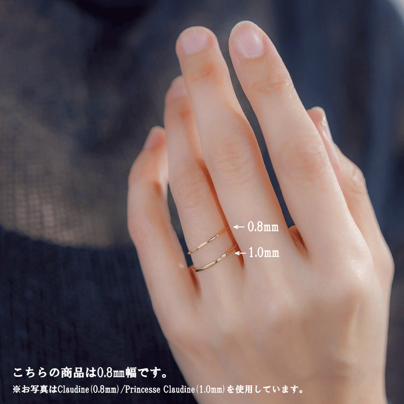 【Frele collection のアイテムは鍛造と呼ばれる手法を用いて制作しているため、繊細ながらも高い強度を実現しています。そのため変形に強く、普段使いにもおすすめです。また内甲丸という加工をすることで滑らかな指通りでストレスのない指輪となっております。】