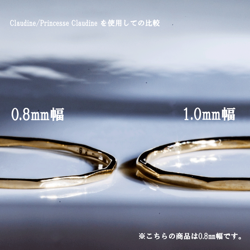 Sandra(サンドラ)と名付けたこちらのアイテムは、職人がランダムに手打ちした世界にたった一つ、唯一無二のリングです。シンプルで女性らしい華奢なデザインですので、シーンを選ばず共に時間を重ねて頂けます。お手持ちのリングに重ね付けしたり、特別な方へのギフトにもおすすめ!さりげない品と、指先の動きに添った光と影のコントラストが美しいジュエリーです。